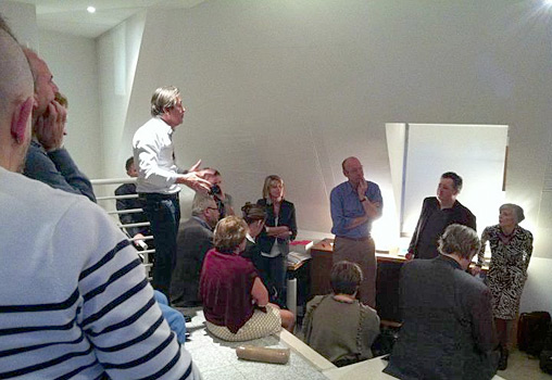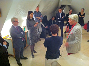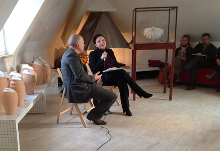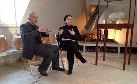 Pierre Cornette de Saint-Cyr, Isabelle de Maison Rouge - critique d'art et commissaire d'exposition, Jean-Pierre Raynaud et Nicolas Laugero Lasserre, Directeur de l'Espace Pierre Cardin et président fondateur d'Artistik Rezo débattaient sur l'Art contemporain (organisation Art & Business Club).